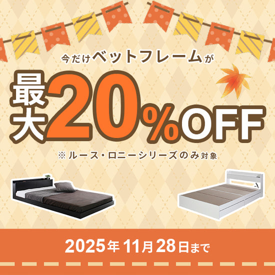 配送料 ◆本州・四国・九州地域に限り、基本送料無料となっております(北海道・沖縄・離島地域は別途見積)。 ◆お届け先が、北海道・沖縄・離島地域となる場合は、各種条件により料金が異なります。 ◆ご注文いただいた内容について、別途、正式な送料を含めた確認メールをお送りさせていただきます。 ◆こちらの商品は、組立設置希望の場合、別途費用が発生します。 商品説明 ●優れた収納力と実用性を兼ね備えた、シンプルなヘッドレスデザインのベッドフレームです。 ●フレームの内部は仕切りのない収納スペースになっており、場所を取りがちなシーズンオフの布団や服、小物類など約400Lをすっきりと収納しておくことができます。 ●フレームの床板は簡単に取り外しができるよう小さく8枚に区切り、その内1枚は取り外しがしやすいように取っ手が付いています。 ●ヘッドレスで全長197cmというコンパクトなベッドフレームなので、どんなお部屋にもスムーズにフィットします。 ●ぶつけた際に怪我をしにくいようフレームの角を丸く加工してあるので、子供やペットのいるご家庭でも安心してお使いいただけます。 ●部屋の隅に寄せて配置しクッションを置いてソファとして、フレームを覆うように布を被せて壁側に大きめの板を挟めばホテル風なベッドとして、お手軽にアレンジが可能です。 ●パーツが少なくシンプルな構造なので簡単に組立ができます。 ●ブラウン、ブラック、グレー、ホワイトの豊富なカラーバリエーションをご用意しています。 ●裏表で寝心地が違う両面仕様のマットレスが付いたセットもございます。 商品情報 ■サイズW970×D1970×H265mm ■内寸床板厚み:35mm 収納部:W925×D1935×H200~230mm ■商品重量26kg ■梱包サイズW980×D280×H320mm ■梱包重量27kg ■カラーホワイト、ブラウン(廃盤)、グレー(廃盤)、ブラック(廃盤) ■材質本体:MDF、床材:LVL・MDF ■付属品貼付用傷防止フェルト ■機能床下収納(約400L) ■組立有無有り(組立品)※お客様組立の商品です。 ■配送エレベーターなしの場合、別途階段上げ料が発生します。また、配送の時間指定は出来ません。ご了承ください。 メーカー在庫品の為、取寄元の在庫が品切れの場合は、注文をキャンセルさせていただきます。 ■注意事項この商品は大川民芸家具ではございません。予めご了承ください。 また、こちらの商品にはマットレスは付属いたしません。 ご使用の際には必ずスプリングマットレスを使用してください。