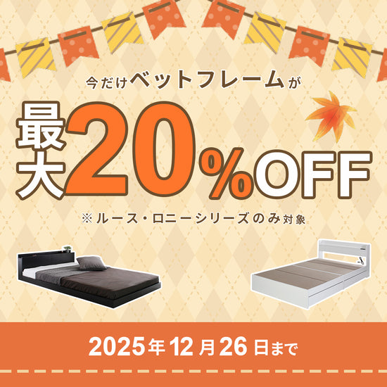 配送料 ◆本州・四国・九州地域に限り、基本送料無料となっております(北海道・沖縄・離島地域は別途見積)。 ◆お届け先が、北海道・沖縄・離島地域となる場合は、各種条件により料金が異なります。 ◆ご注文いただいた内容について、別途、正式な送料を含めた確認メールをお送りさせていただきます。 ◆こちらの商品は、組立設置希望の場合、別途費用が発生します。 商品説明 ●シンプルなデザインでも機能をしっかり持ったルースシリーズのベッドフレームです。 ●ヘッドボードに棚があり、スマホやメガネ、目覚まし時計などの小物を手元に置くことができます。 ●棚上部の2口コンセントではスマホやタブレットの充電、ランプの電源としても使用可能です。 ●シンプルなフレームデザインで床下には市販の収納ケースで 自由に配置し収納スペースとしてもお使いいただけます。 ●真ん中でクロスする補強材を使用しており強度の確保と、巾木よけの加工を施しております。 ●カントリー風、シンプルモダン、ガーリー風、どんなお部屋にも合わせられるホワイトと、光の加減で変わった表情を見せる大人なブラックの2色をご用意しました。 商品情報 ■サイズW1200×D2110×H700mm ■重量45.9kg ■梱包サイズ梱包1:W620×D500×H165mm梱包2:W1010×D315×H110mm梱包3:W1240×D280×H50mm ■梱包重量50kg ■耐荷重120kg ■カラーホワイト、ブラック ■材質本体:メラミン化粧板床材:LVL・MDF ■機能ヘッドボード棚、2口コンセント付き、巾木よけ加工 ■組立有無有り(組立品)※お客様組立の商品です。 ■配送エレベーターなしの場合、別途階段上げ料が発生します。また、配送の時間指定は出来ません。ご了承ください。メーカー在庫品の為、取寄元の在庫が品切れの場合は、注文をキャンセルさせていただきます。 ■注意事項この商品は大川民芸家具ではございません。予めご了承ください。
