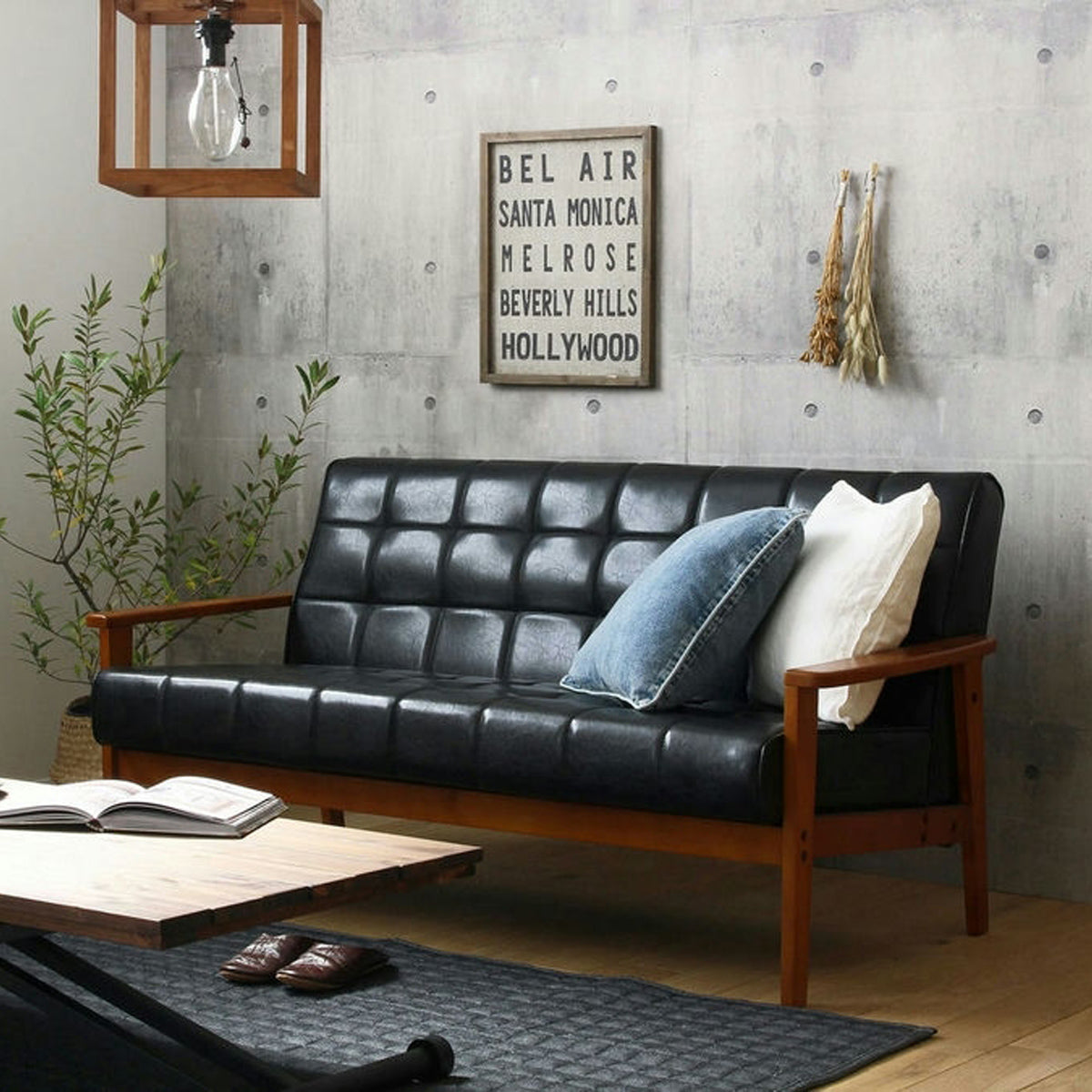 木のぬくもりが感じられる天然木フレームと、しっとりとした艶のある合成皮革の組み合わせは、時代を超えた普遍的な魅力を放ちます。丁寧に施されたキルティング加工は、レトロな風合いを持ちながらも現代的な洗練さを兼ね備え、あなたの部屋を特別な場所へと変えてくれるでしょう。