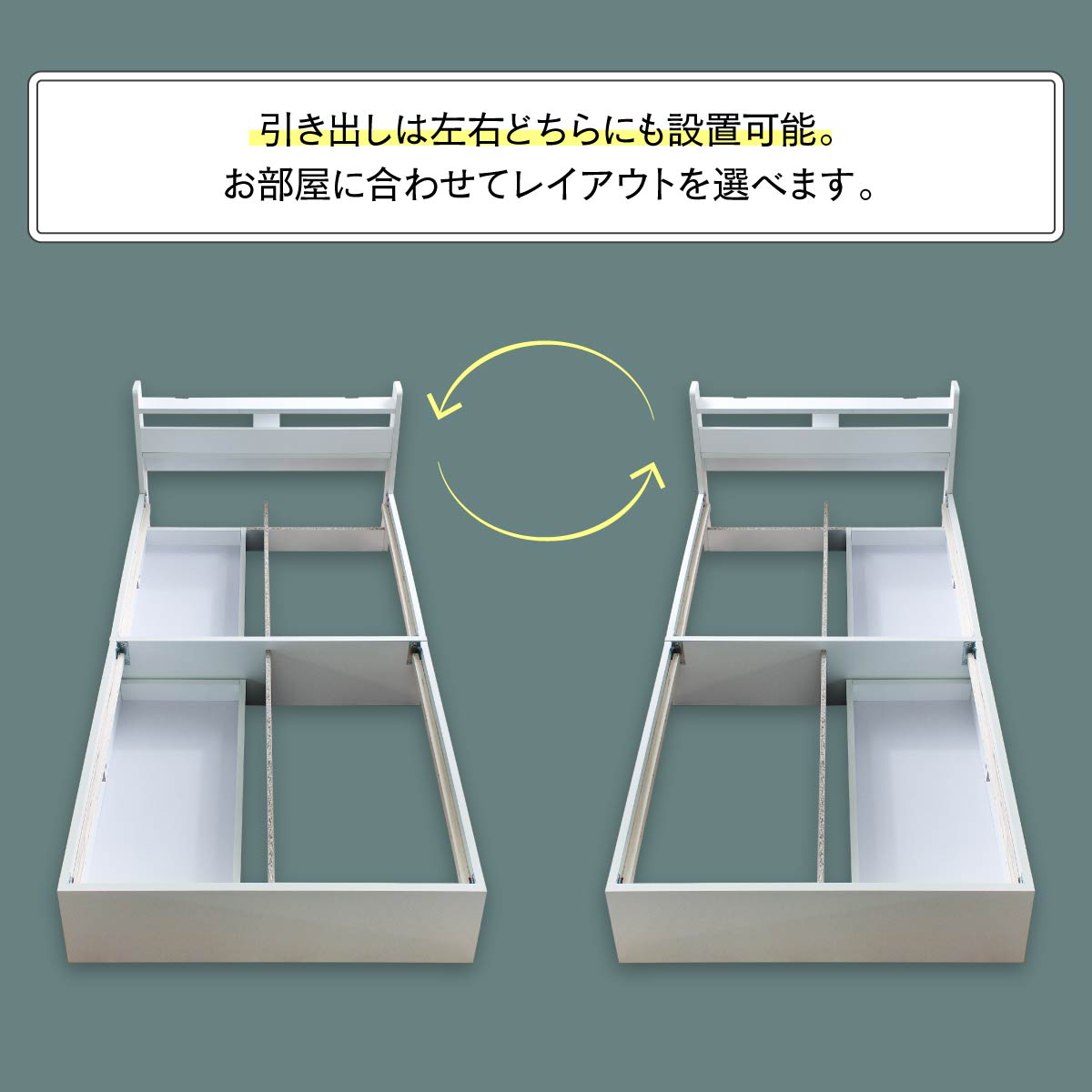 引き出しはお部屋の間取りや利き手に合わせて左右どちらにも設置できるから、模様替えの際も柔軟に対応できて便利です。