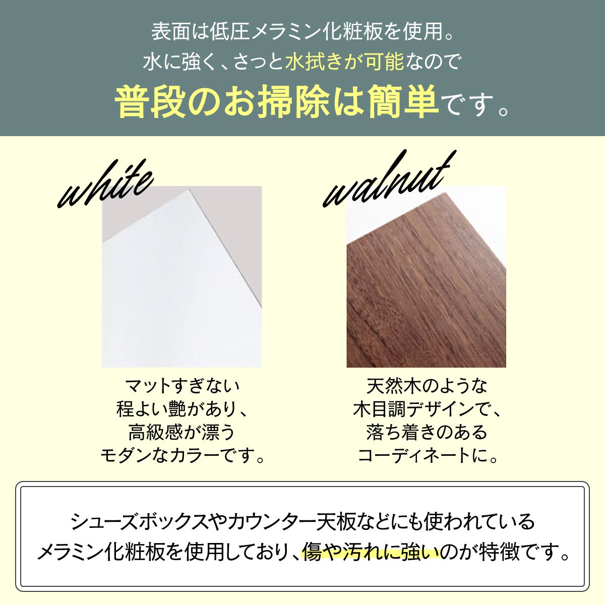 表面には高級感のある低圧メラミン化粧板を使用し、水や汚れに強くお手入れも簡単だから、いつでも綺麗で清潔な状態を保てます。