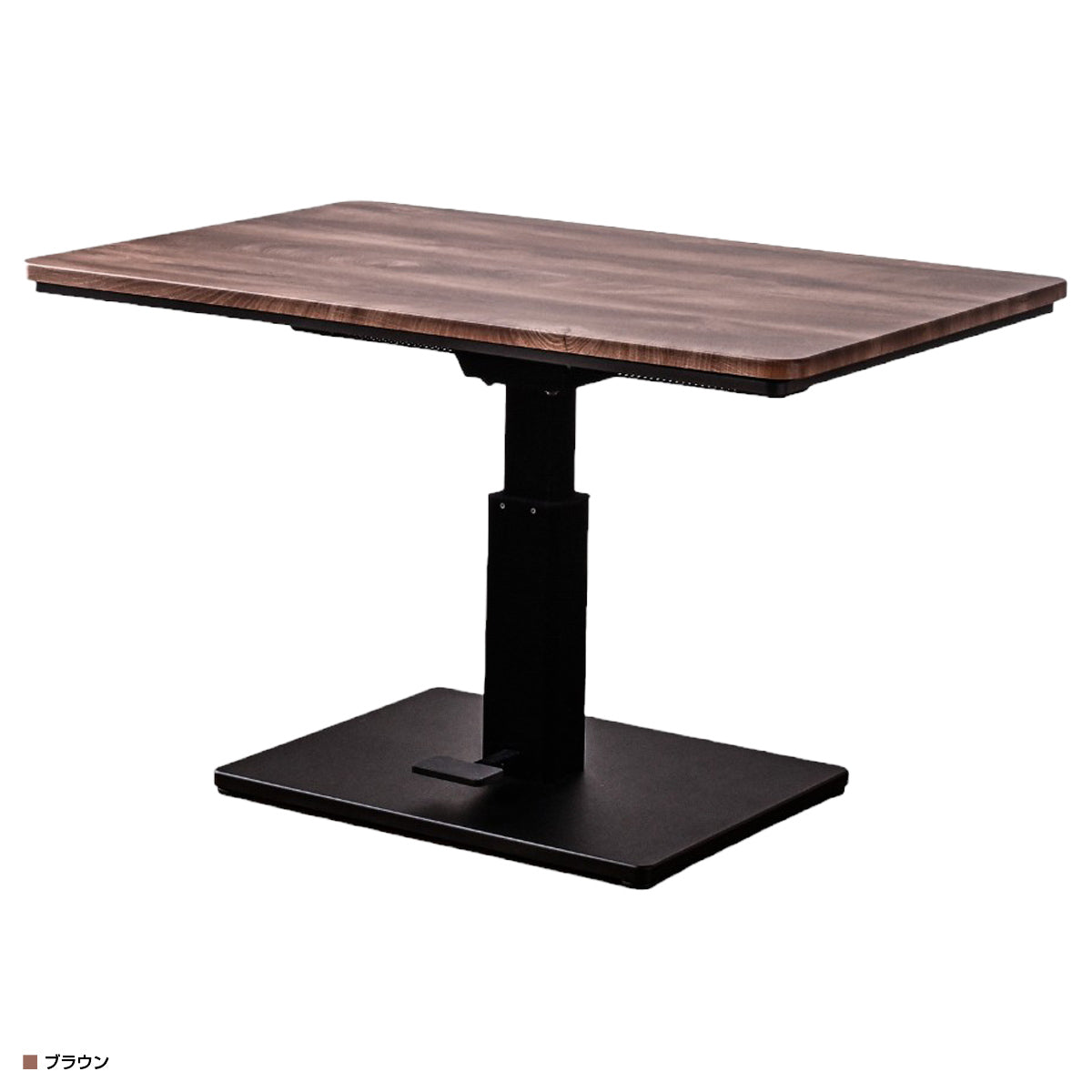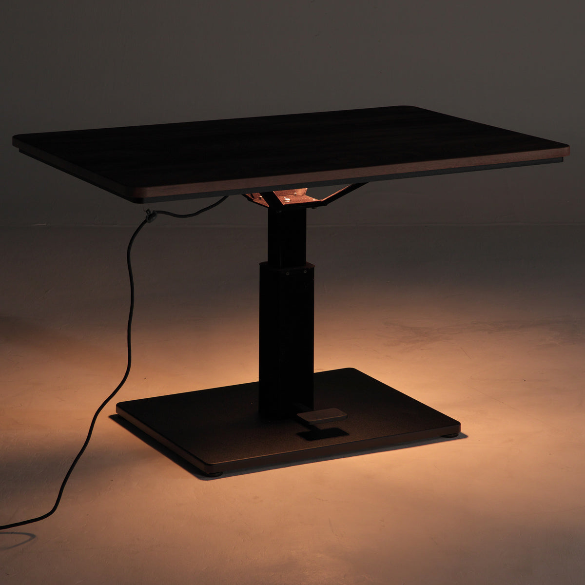 幅120cm×奥行き80cmの角型天板のペダル式昇降こたつテーブル。