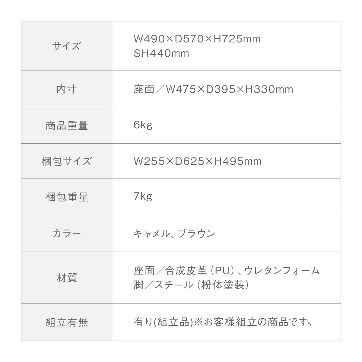 ●デザイン性にこだわりながらも、丸みがかった座面が身体にフィットして座り心地抜群のチェアです。 ●ちょっと腰掛けたい時にスムーズな立ち座りができ、リラックスした姿勢を取りやすい高さ設計になっております。 ●長時間座っていても快適な座り心地なので、ダイニングやワークスペースなどでのご使用に最適です。 ●合皮を使用した座面はお手入れが簡単で、汚れても乾いた布でさっと拭くことができます。 ●ナチュラルカラーの合皮と無機質なスチールを組み合わせたデザインは、どこか懐かしいヴィンテージ感を醸し出し、お部屋の雰囲気をより一層引き立ててくれることでしょう。 ●深みのあるブラウンと、あたたかな印象を持つキャメルの2色から、お部屋のテーマに合わせてお選びください。 |