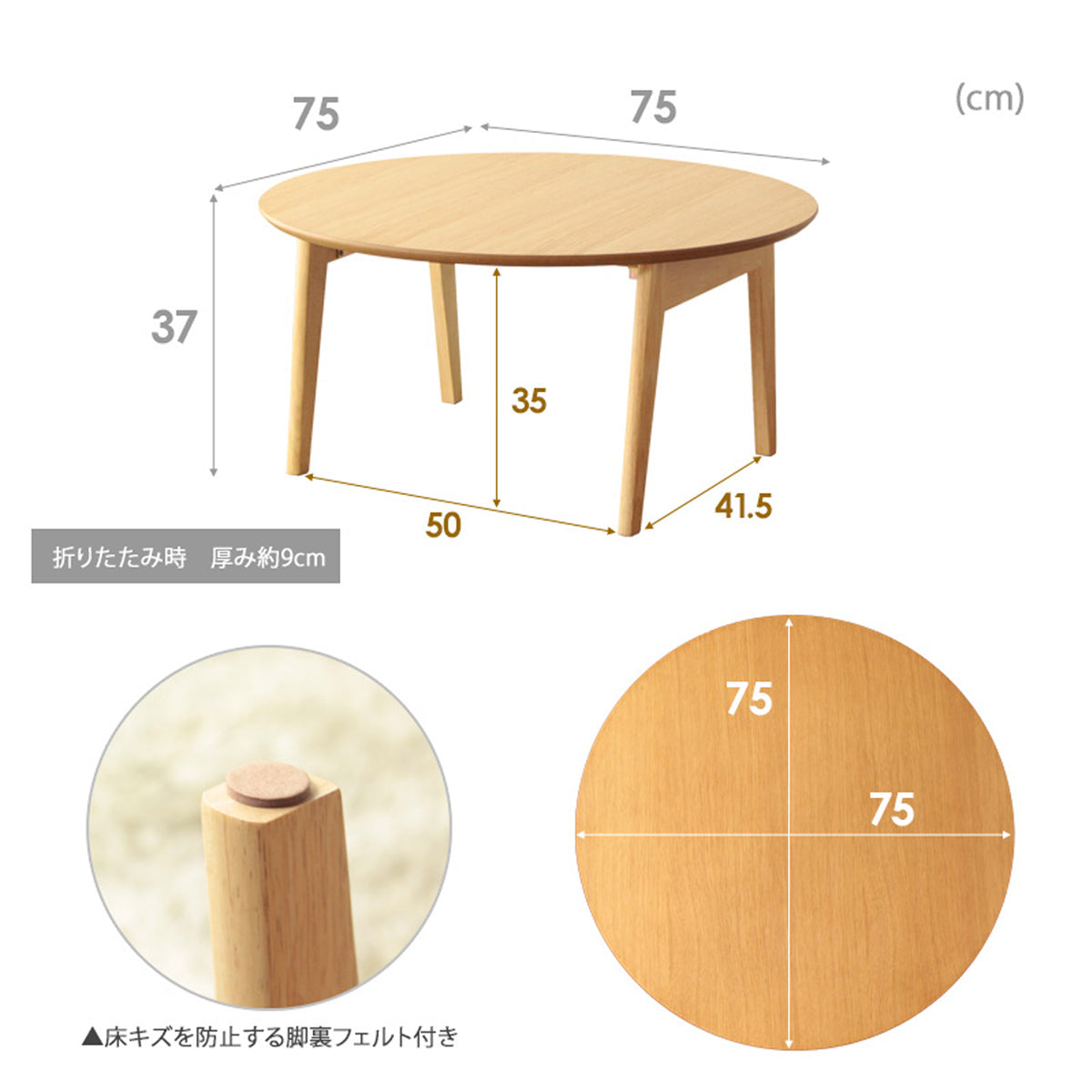 - マロン サークル 折りたたみテーブル(W750×D750×H370)