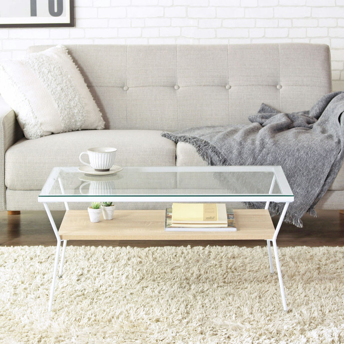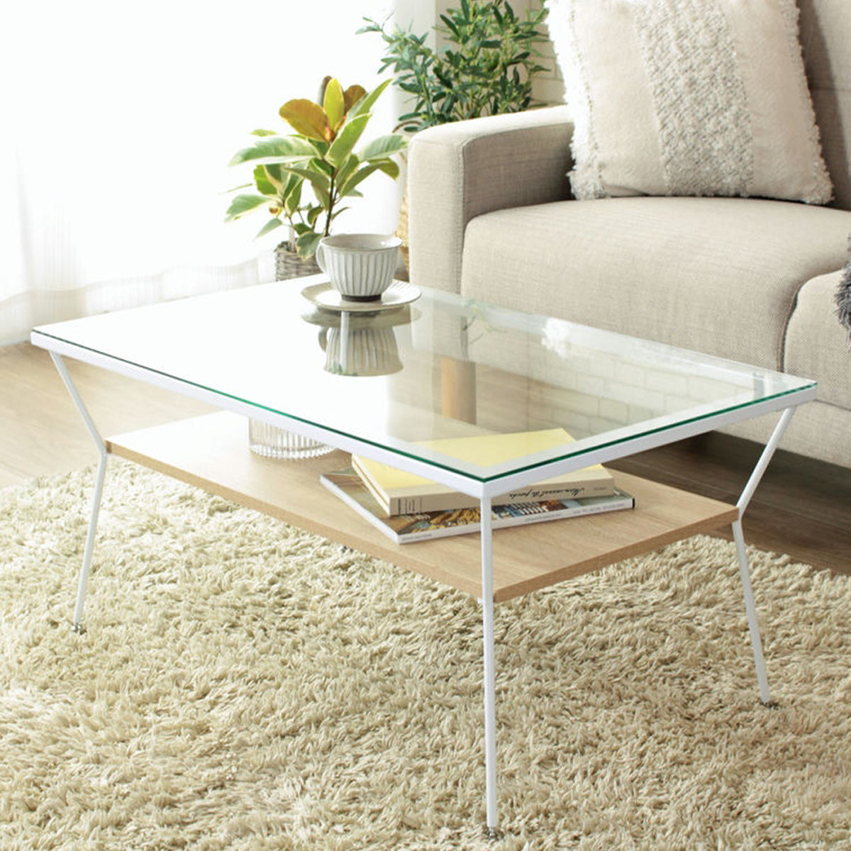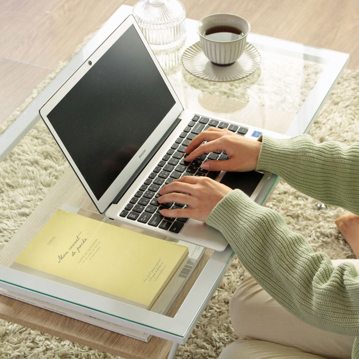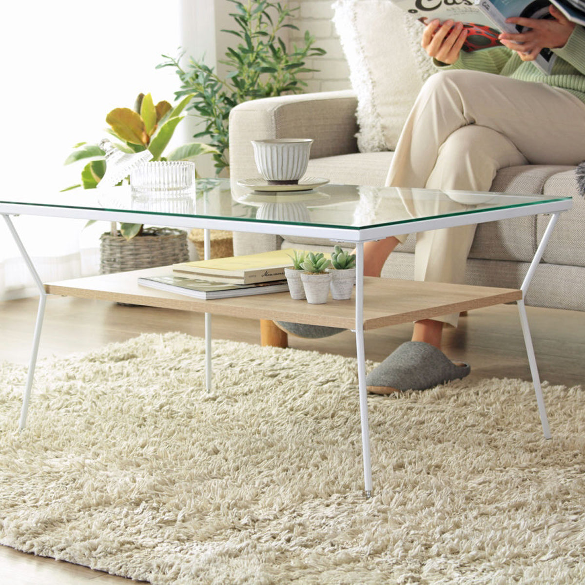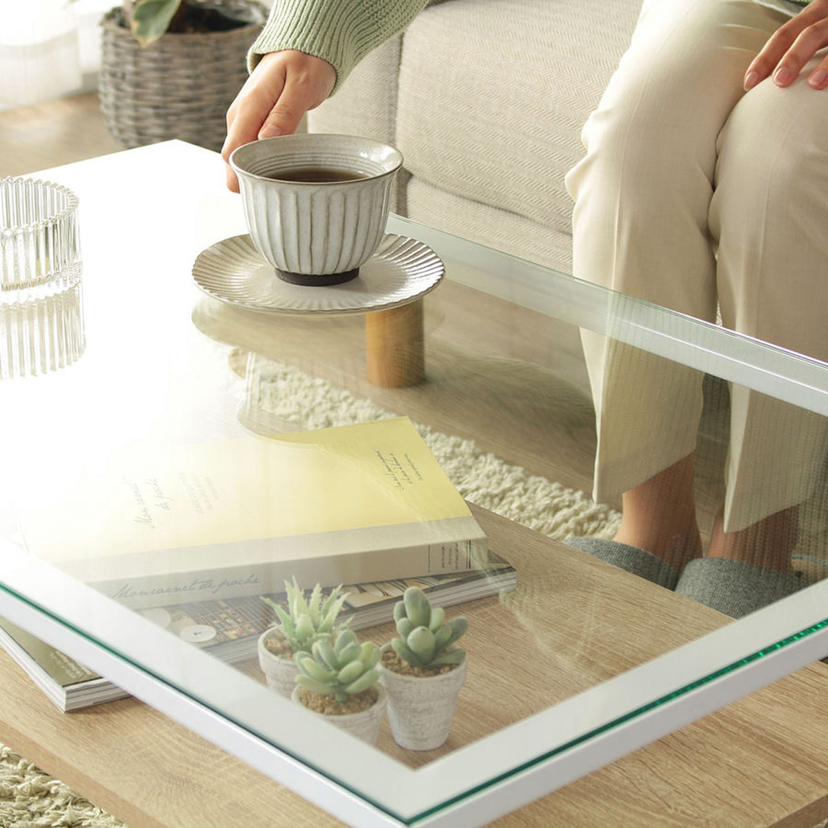 ガラス天板の下に収納スペースを設けることで、飾りながら収納できるリビングテーブルです。