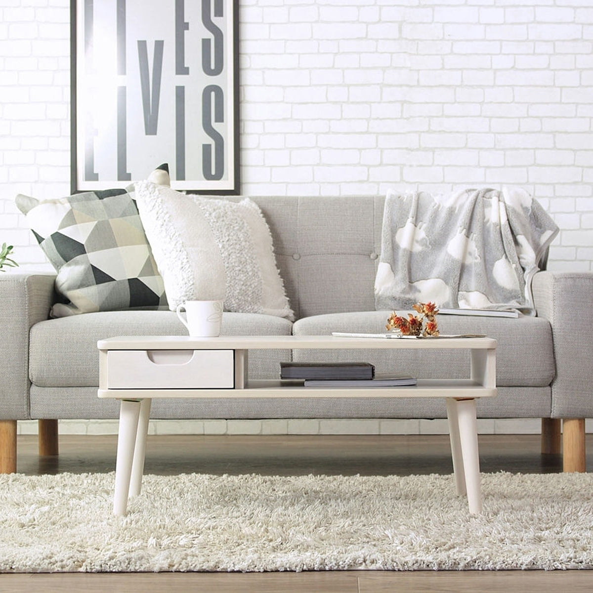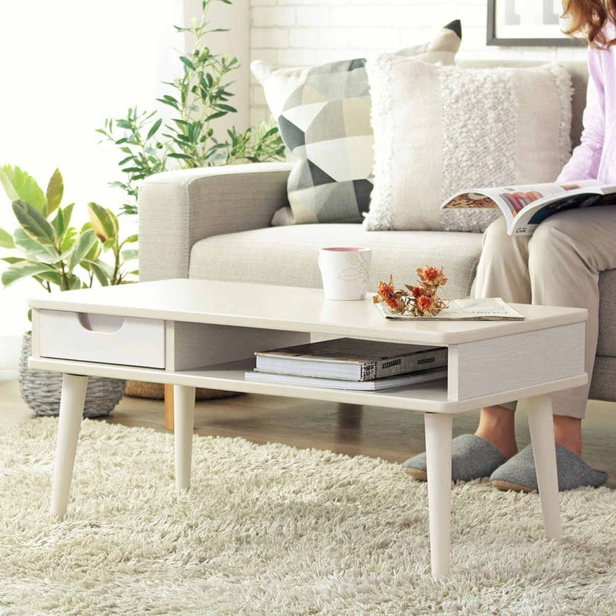 ●コンパクトながら引き出し収納を兼ね備え、木のぬくもりを感じさせてくれるローテーブル。 ●天板を広く使いたい方のために、雑誌や新聞、ノートパソコンなどが収納できるオープン棚と、リモコンや文具などの小物類を収納できる引き出しを備えており、テーブル周りをすっきりまとめられます。 ●天板の角は優しく丸みを帯びており、丸みのあるフォルムと温かみのある木の素材感が絶妙にマッチし、ソファの前や1人暮らしのフロアライフにピッタリです。 ●カラーは清潔感のあるホワイトと温かみを感じるナチュラルの2色から選べ、お部屋の雰囲気に合わせたコーディネートが楽しめます。 |