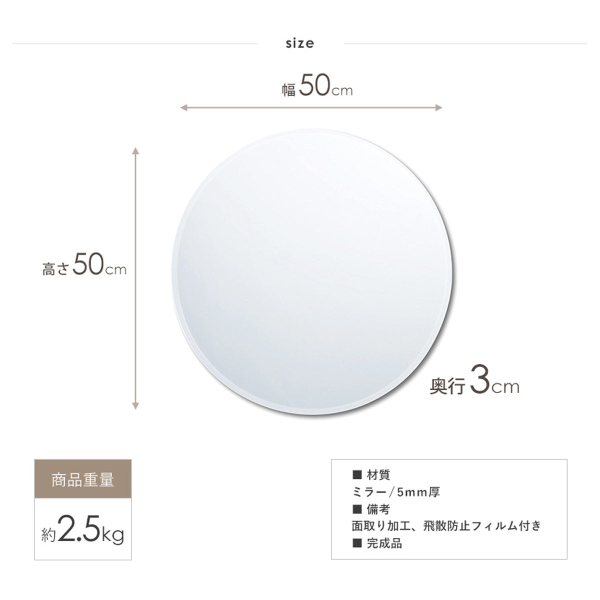 - ノンフレーム ウォールミラー(W500×D30×H500)