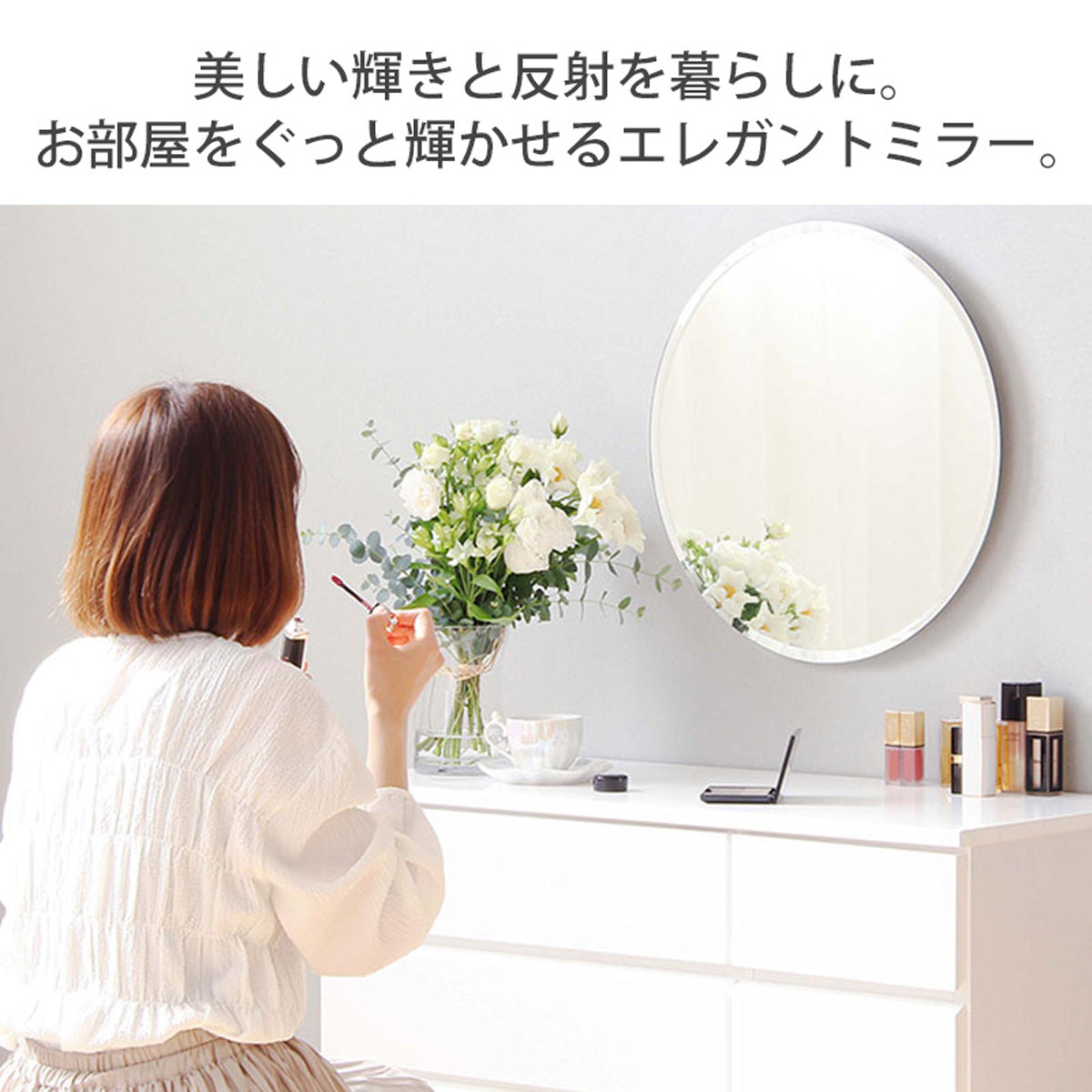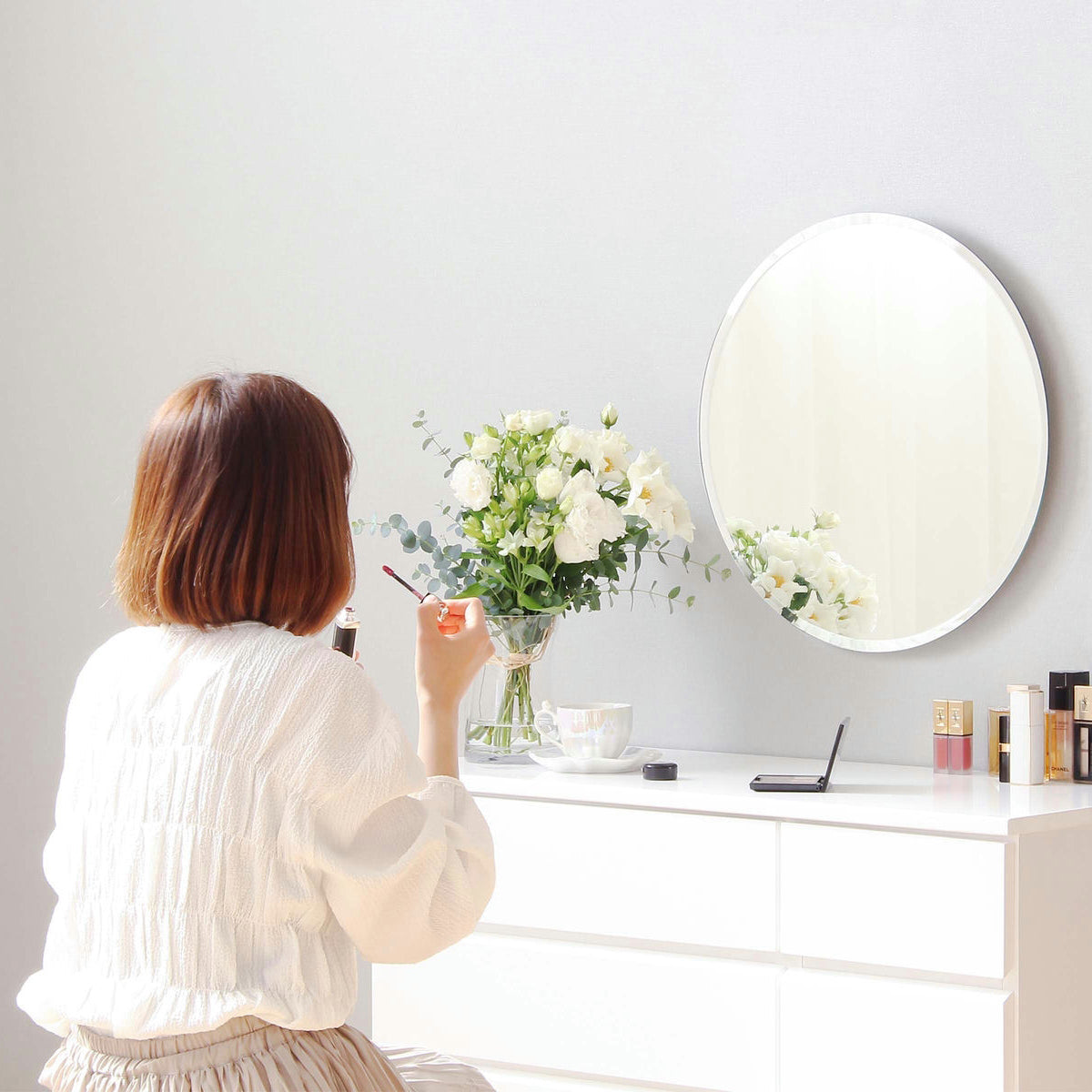 フチの面取り加工が施されたミラーは、美しい輝きと立体感を引き立て、洗練された空間を演出してくれます。