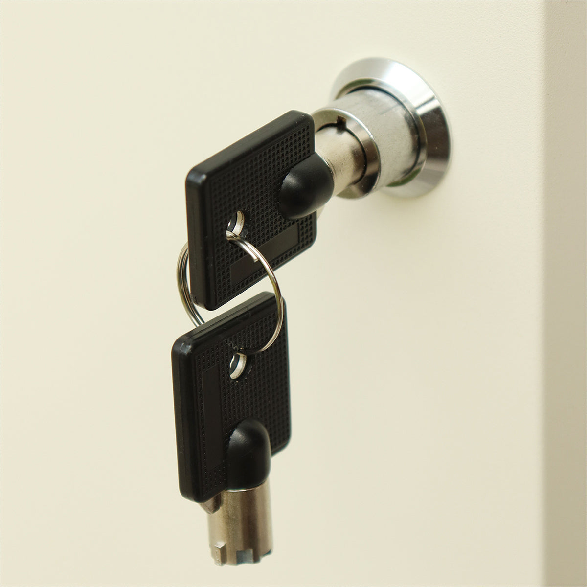 上段・下段ともにプッシュキー仕様なので防犯面も安心で、スペアキーも1本付属しています。