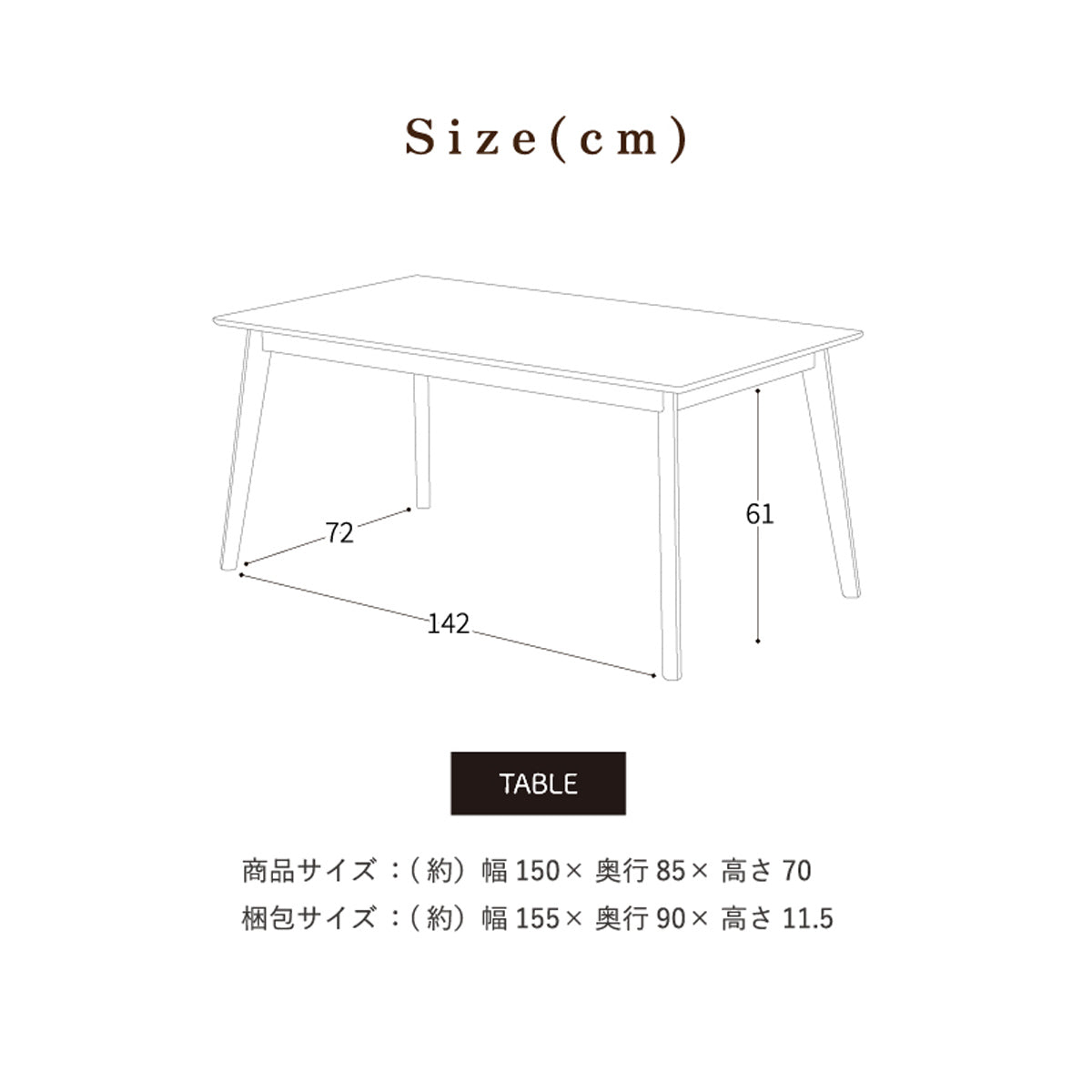 テーブルの150×85cmというサイズ感は、4人家族の食事に最適なスペースを確保しつつ、置き場所を取りすぎないバランスの良さが特徴。天板には水や汚れに強いウレタン塗装が施されているので、食べこぼしやドリンクをこぼしてしまった時も、さっと拭くだけで美しさを保てます。