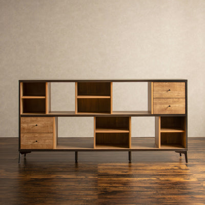 オープン収納スペースは、タテヨコの棚板によって絶妙に区切られており、あなたのセンスを活かした小物のディスプレイが可能です。お気に入りの写真立てや思い出の品、季節の小物などを飾れば、それだけでインテリアとしての存在感を放ちます。一方で、引出し収納には見せたくないものをすっきりと収納できるため、生活感を出さずに整理整頓が叶います。