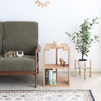ソファやベッドの横に置けば、リモコンや本、スマートフォンなどの小物置きとして活躍。コンパクトなサイズ感でありながら、十分な収納力を備えています。天板と棚にはそれぞれ5kgまでの耐荷重があり、お気に入りの観葉植物や写真立て、コレクションアイテムなどを飾る「魅せる収納」としても機能します。