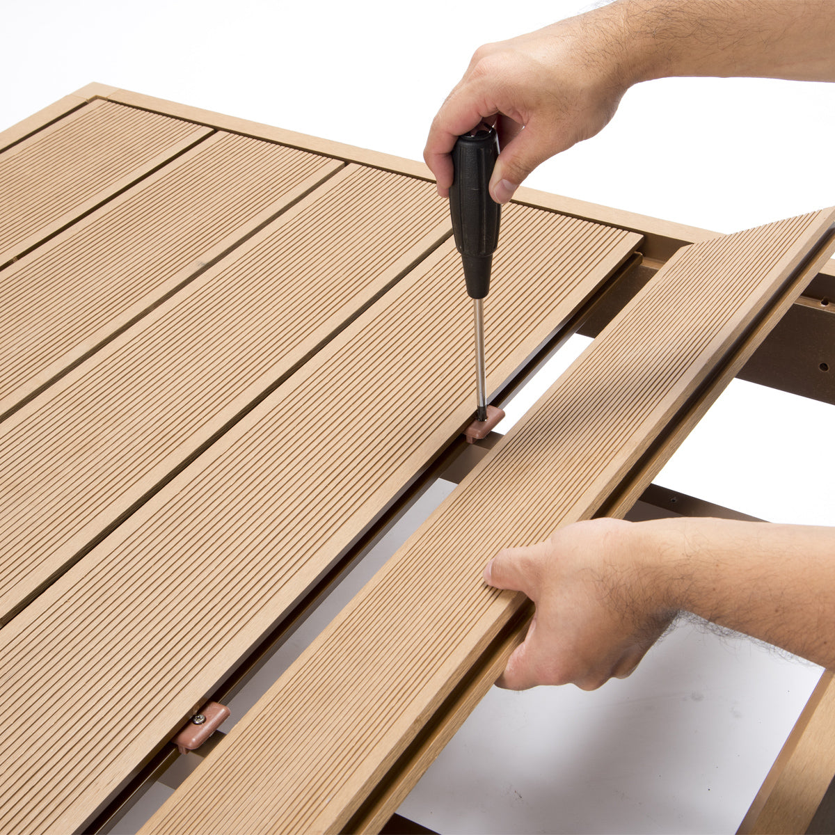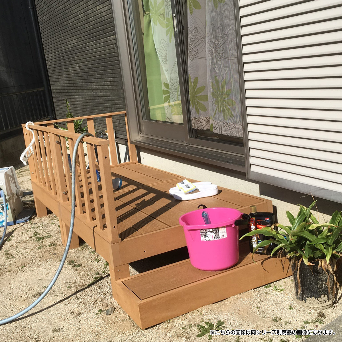 配送料 ◆本州・四国・九州地域に限り、基本送料無料となっております(北海道・沖縄・離島地域は別途見積)。 ◆お届け先が、北海道・沖縄・離島地域となる場合は、各種条件により料金が異なります。 ◆ご注文いただいた内容について、別途、正式な送料を含めた確認メールをお送りさせていただきます。 ◆こちらの商品は、組立設置希望の場合、別途費用が発生します。 商品説明 ●錆びない、腐らない、壊れない、と三拍子そろった樹脂成型品のウッドデッキ。 ●水に強く、汚れてもデッキブラシなどでゴシゴシ洗えます。 ●木製ではないため、シロアリなどの害虫の心配もなく、経年劣化による色落ちなどもないため、メンテナンス費用もかかりません。 ●さらに耐光性にも優れているため、外に放置しておいても大丈夫です。 ●耐荷重は200kgと申し分なく、大人が乗っても全く問題ない強度です。 ●定番でおしゃれなチーク風カラーと、シックで高級感のあるブラックカラーからお選びください。 ●オプションでコーナーパネルやサイドパネル、踏台などもご用意しておりますので、自由に組み合わせてお使いください。 商品情報 ■サイズW900×D900×H280mm ■内寸床下間口:175mm ■重量22kg ■梱包サイズW950×D335×H215mm ■梱包重量23kg ■カラーチーク、ブラック ■材質人口木樹脂成型品 ■組立有無有り(組立品)※お客様組立の商品です。 ■配送エレベーターなしの場合、別途階段上げ料が発生します。また、配送の時間指定は出来ません。ご了承ください。 メーカー在庫品の為、取寄元の在庫が品切れの場合は、注文をキャンセルさせていただきます。 ■注意事項この商品は大川民芸家具ではございません。予めご了承ください。 平らな地面に設置して下さい。 ■備考組立目安時間:約30分